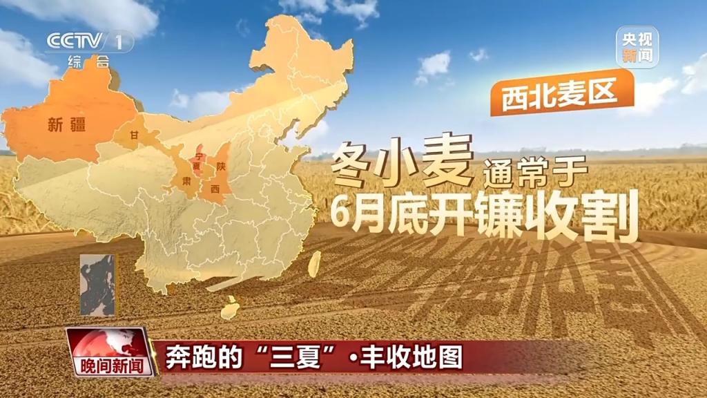 在西北麦区的陕西、甘肃、宁夏、新疆,冬小麦通常于6月底开镰收割。